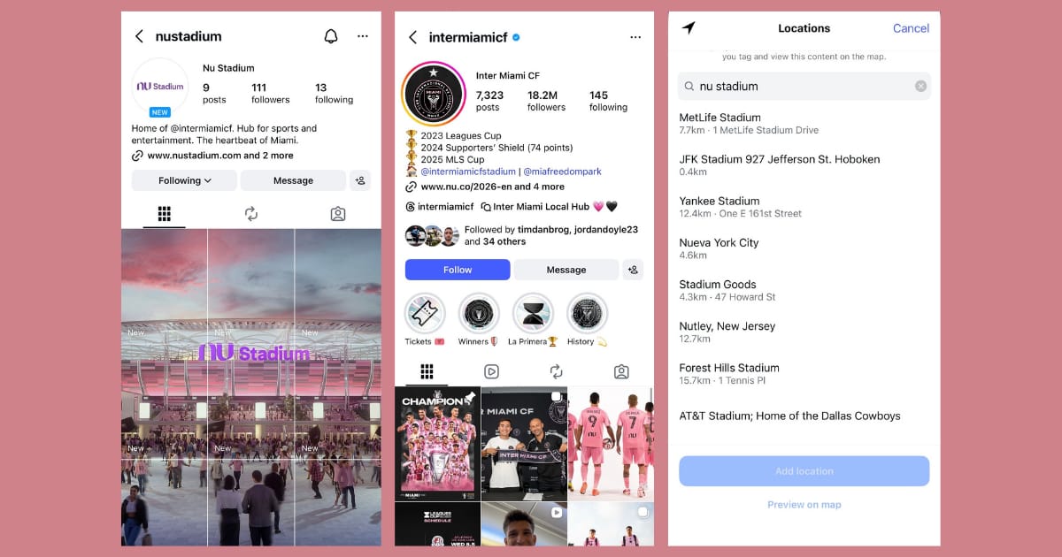 A new Instagram account — @NuStadium — existed, but it wasn’t tagged in any of the launch posts.